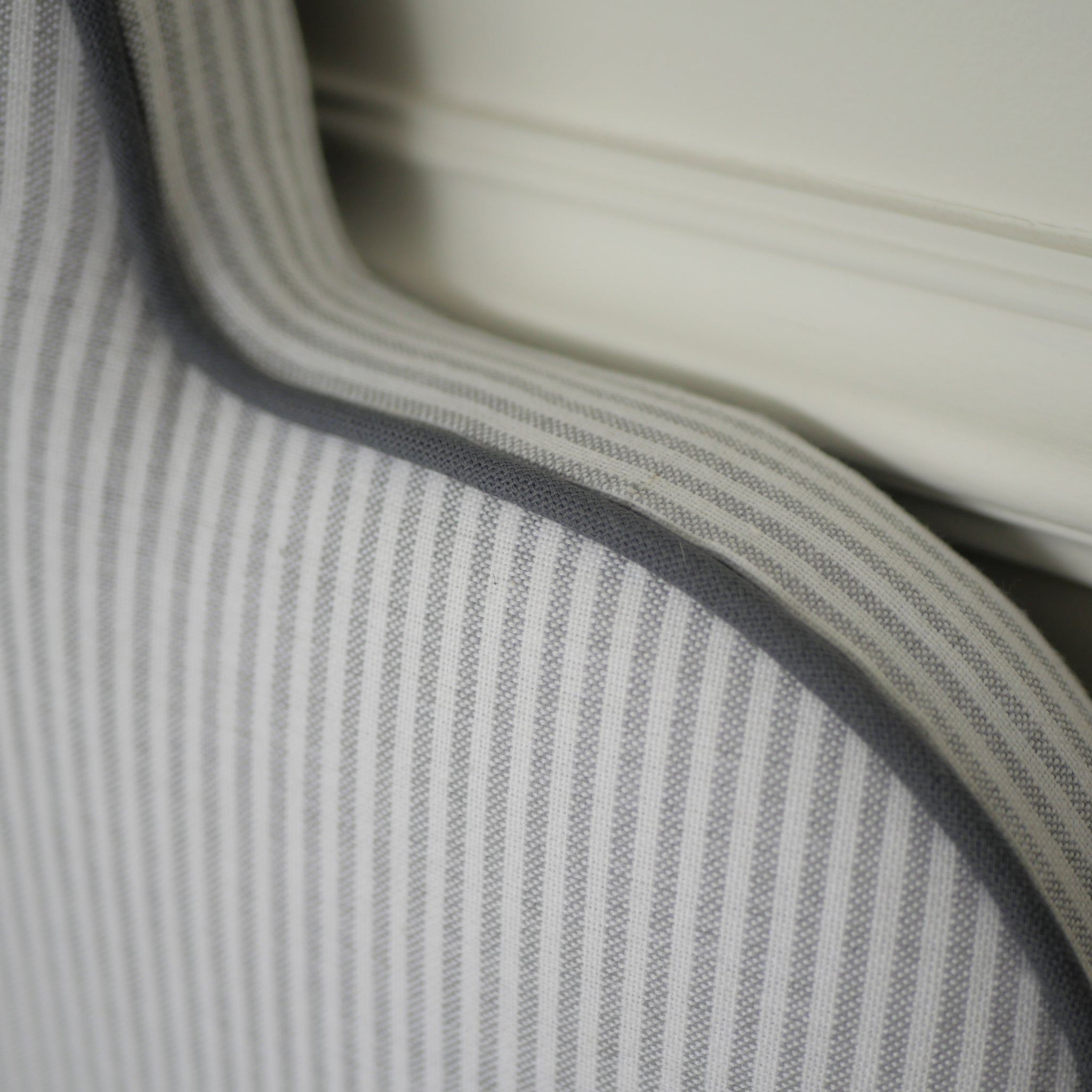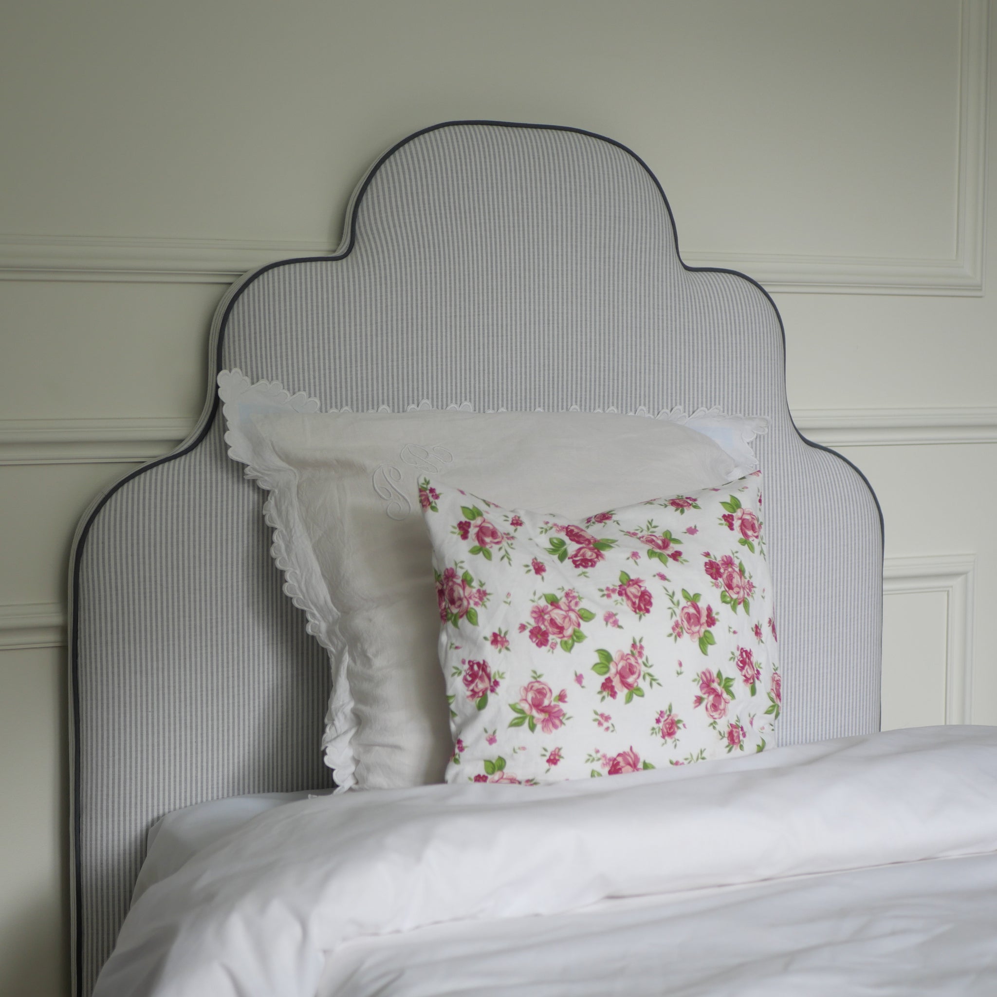La tête de lit Pèlerine en coton rayé gris crée, avec ses rayures délicates, un effet visuel apaisant, parfait pour un espace de repos harmonieux.