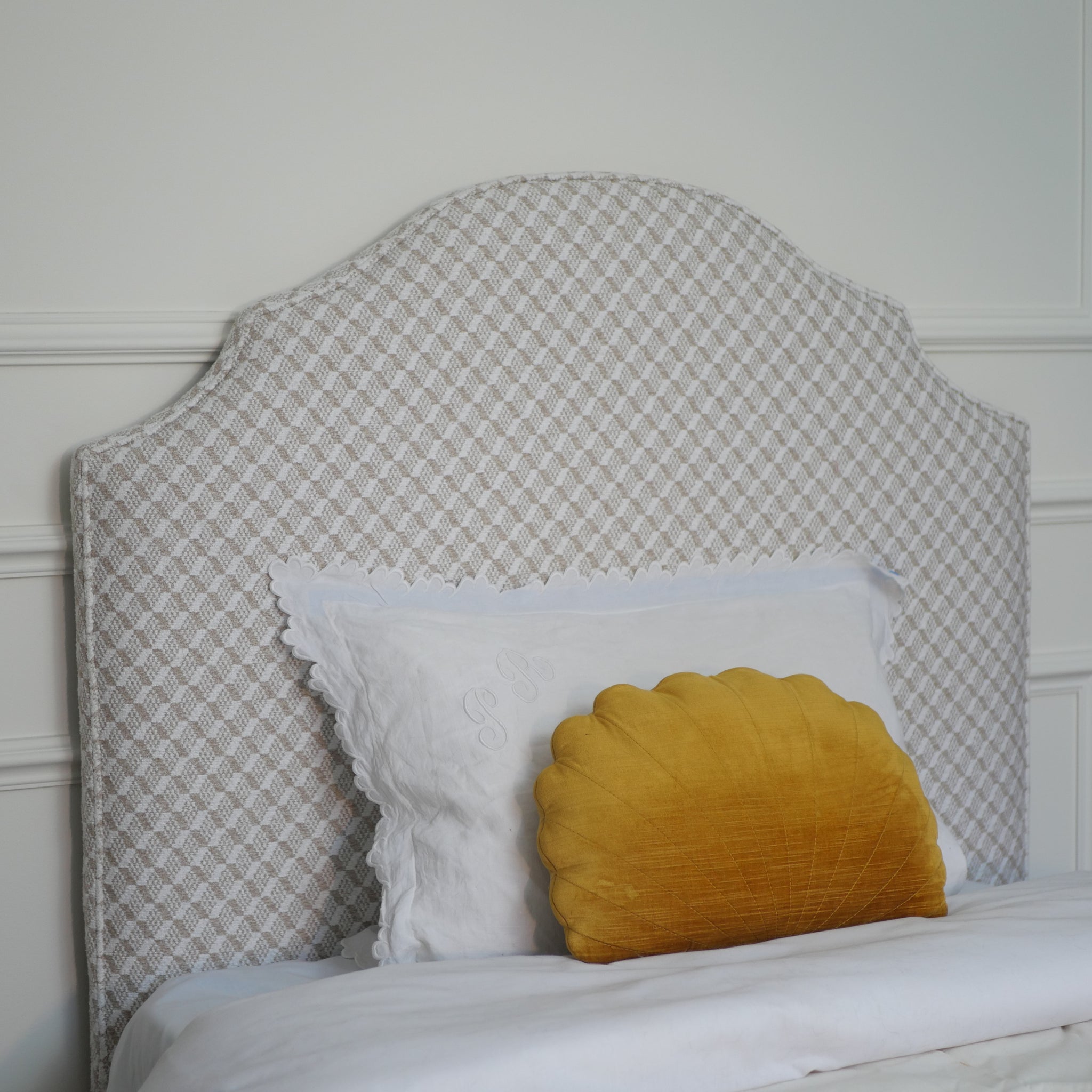 La tête de lit Reine en jacquard beige apporte une touche de raffinement et de douceur à la chambre de votre enfant. Sa teinte neutre s'harmonise parfaitement avec tous les styles de décoration.